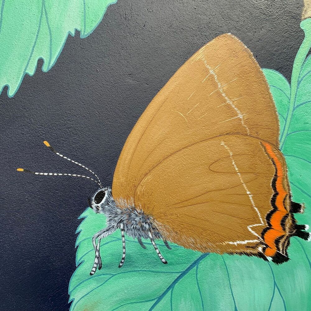 A team of talented artists have brightened up Post Office Lane in Newport with a mural based on the life of Newport resident, the White-Letter Hairstreak butterfly.